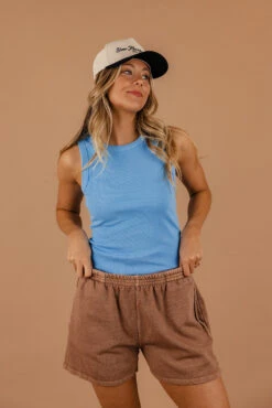 You all know we love a good tank, and this is one of our best. Coming in the cutest blue color, this tank provides a snug fit that moves with you effortlessly. Perfect for casual outings, doing yard work, or just lounging at home. Say goodbye to wardrobe dilemmas and hello to comfort with the Addy Ribbed Tank!