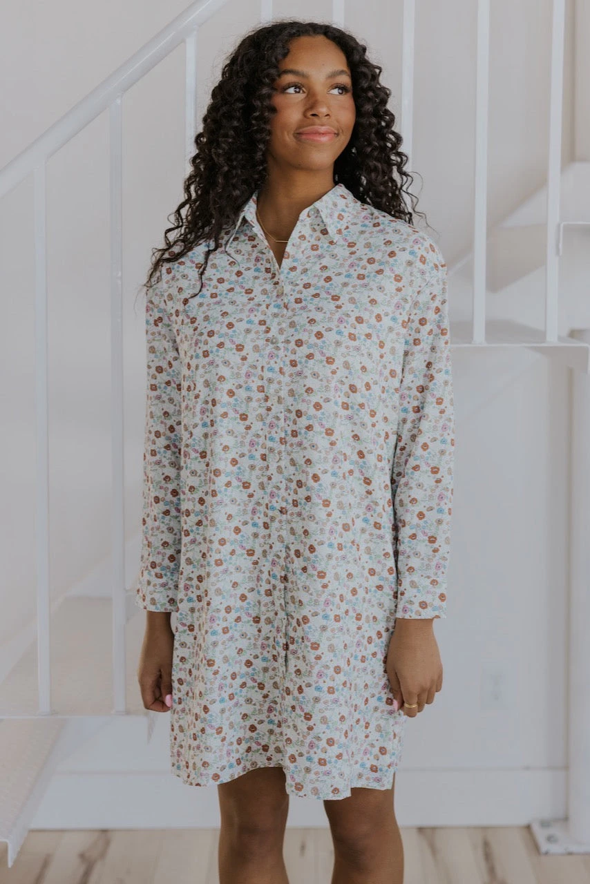 Things that make me jump with glee: shirt dresses, delicate floral patterns, + places to wear them. Pair this dress with tights + boots for the rest of winter, then welcome spring by pairing her with vests + heels. Either way, this dress will have you frolicking through fields of flowers without having to leave your house!