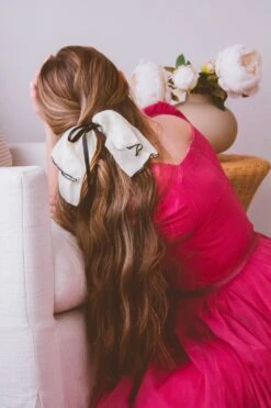 This bow is stunning! Featuring a sheer, cream chiffon bow, with a single satin ribbon bow atop, it sings elegance. The medium-length tail, will blend perfectly with almost any hair length and elevate every outfit and look.