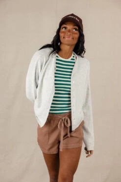 These cozy shorts are designed with your comfort in mind, they boast a relaxed fit and a tie waist detail. Whether you’re running errands or soaking up the sun, these versatile shorts with handy pockets have got you covered.