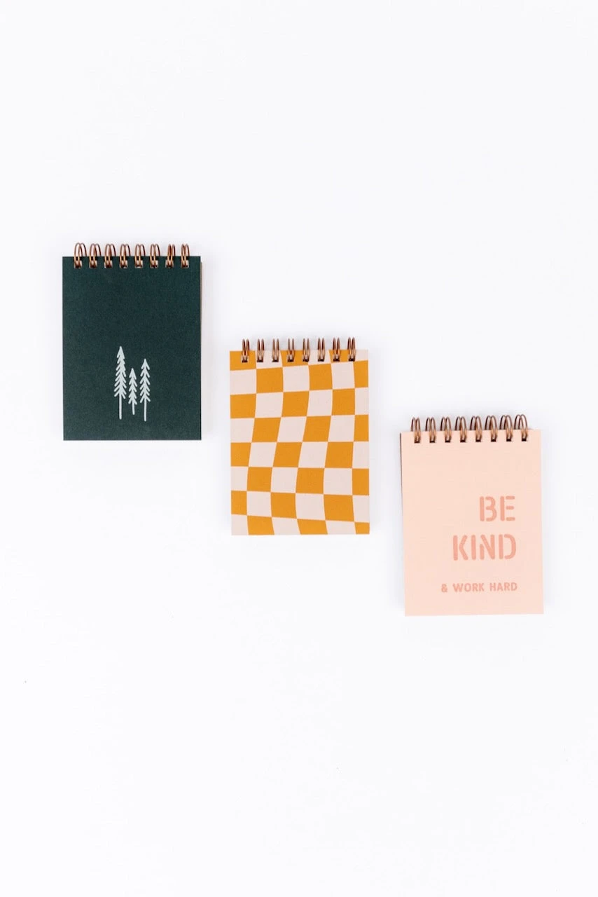 Be kind + work hard. What a good motto to live by! This mini jotter features sturdy pages and a spiral binding for easy use in the office, on the go, or on your work-from-home desk.