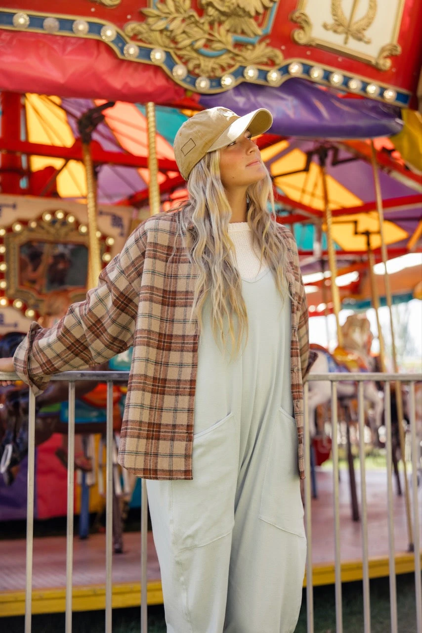 This onesie is the epitome of comfort and style. Designed for all body types, it offers a flattering and relaxed fit. The adjustable straps ensure a customized drape, while the large side pockets add both functionality and a trendy touch. The onesie is a dupe of our fav Free People item!