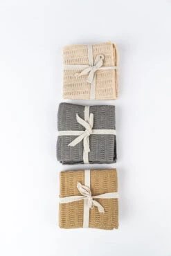 Bring a little spice + texture to your kitchen sink with the Rodney Dish Cloth Set. These woven clothes will make the perfect addition to your kitchen whether you need some more or not.Β The bow that ties theseΒ dishcloths together makes the perfect housewarming gift or in a gift basket for newlyweds.Β