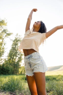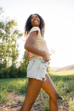 tan // paired with the free people moxie low slung jeans in ivory, the old skool vans in white, + big time denim shorts
