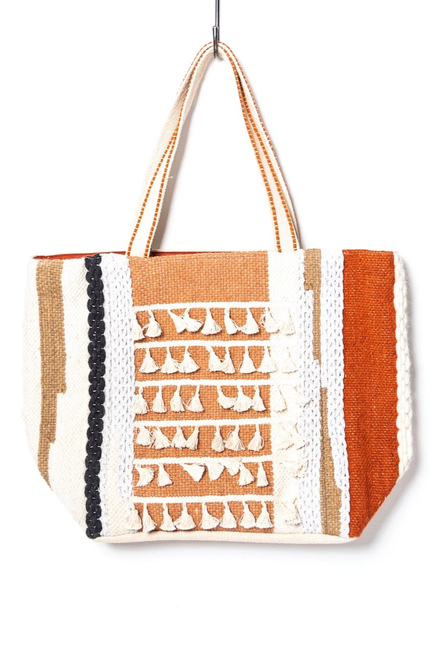 Calling all beach babes! Your beach day just got a whole lot better. The Culebra Woven Tote provides a large, durable space to hold all your goodies without compromising style. The intricate woven detailing throughout and small white tassels along the front add the most unique details. Featuring a magnetic closure, two woven straps, and inner slip pockets.
