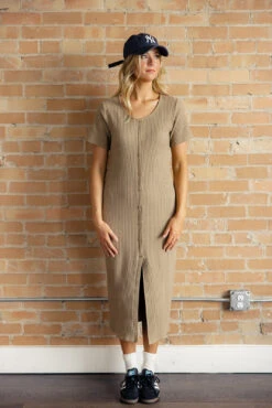 The Darcy Button Down Dress features a scoop neckline and ribbed material. The front slit adds some style but you can feel secure because it has decorative buttons that are nonfunctional, making it easy to move about in this dress!