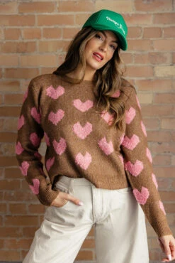 The perfect Valentine’s sweater is here! Act fast before it’s gone! Featuring cozy material, a chocolatey brown with pretty pink hearts, this sweater can be worn all year round for any special occasion!