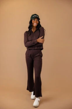 These waffle pants feature a flare leg for a relaxed yet trendy look, and the elastic waistband ensures a snug fit. Pockets make them practical, while the mid-rise design and perfect stretch keeps you feeling comfortable all day. Pair with the matching jacket to complete the set!