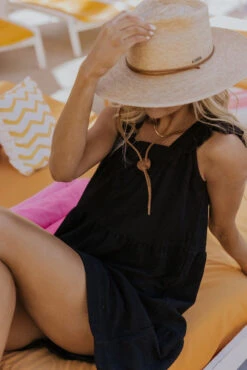 Like an angel ascending from heaven—I present to you… The queen of all sun dresses. The Endless Sun Dress features a tiered skirt, ruffled sleeves, and a square neckline. Effortlessly walk down beach boardwalks + talk sunset walks with your beau in this little black dress. Wear it over your suits for beach days or pair with heels for a romantic seaside dinner.