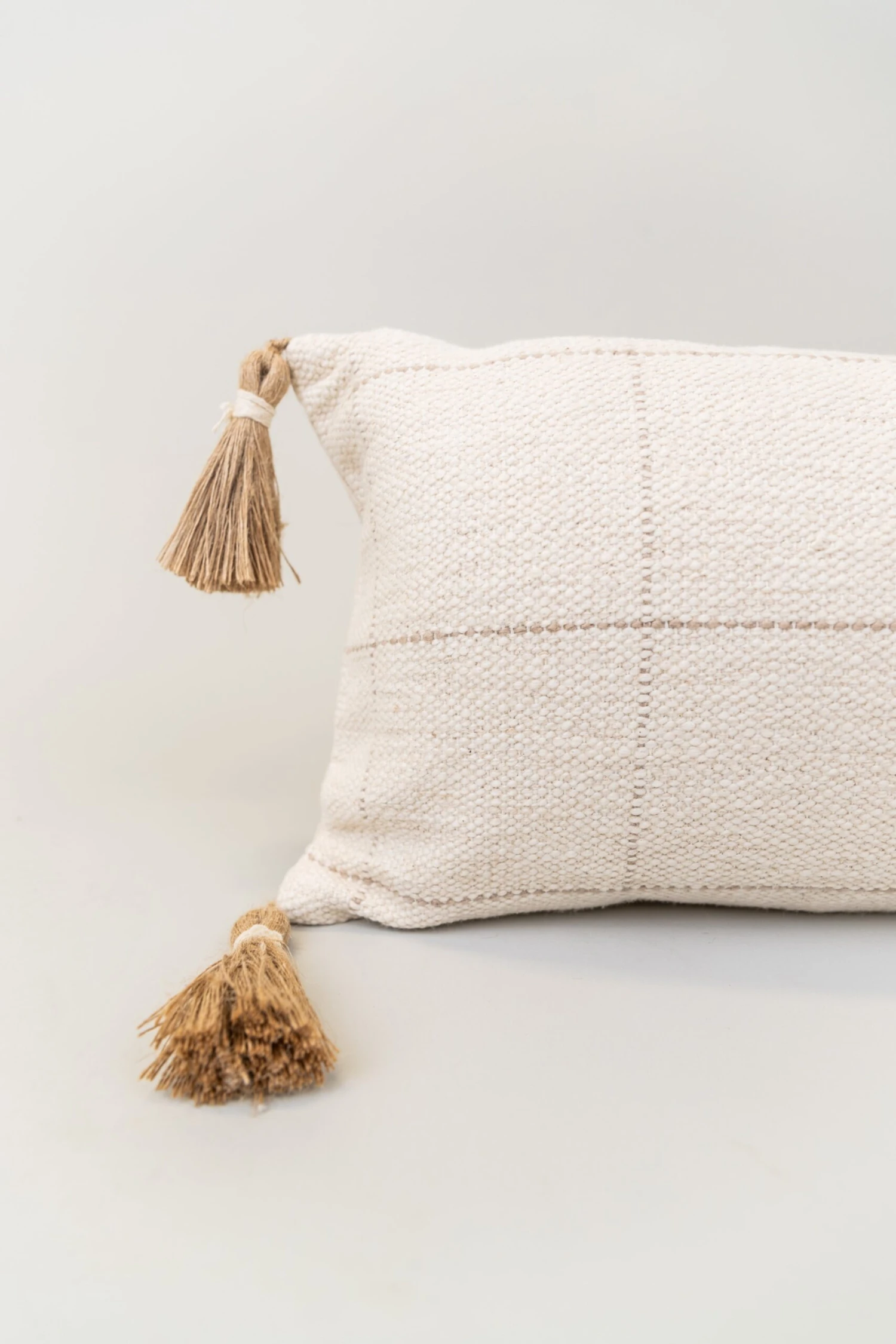 Featuring a large grid design and adorable tassels on each corner, this woven lumbar pillow adds a touch of cute sophistication to any space. Elevate your comfort game with this delightful accessory that’s as functional as it is adorable!