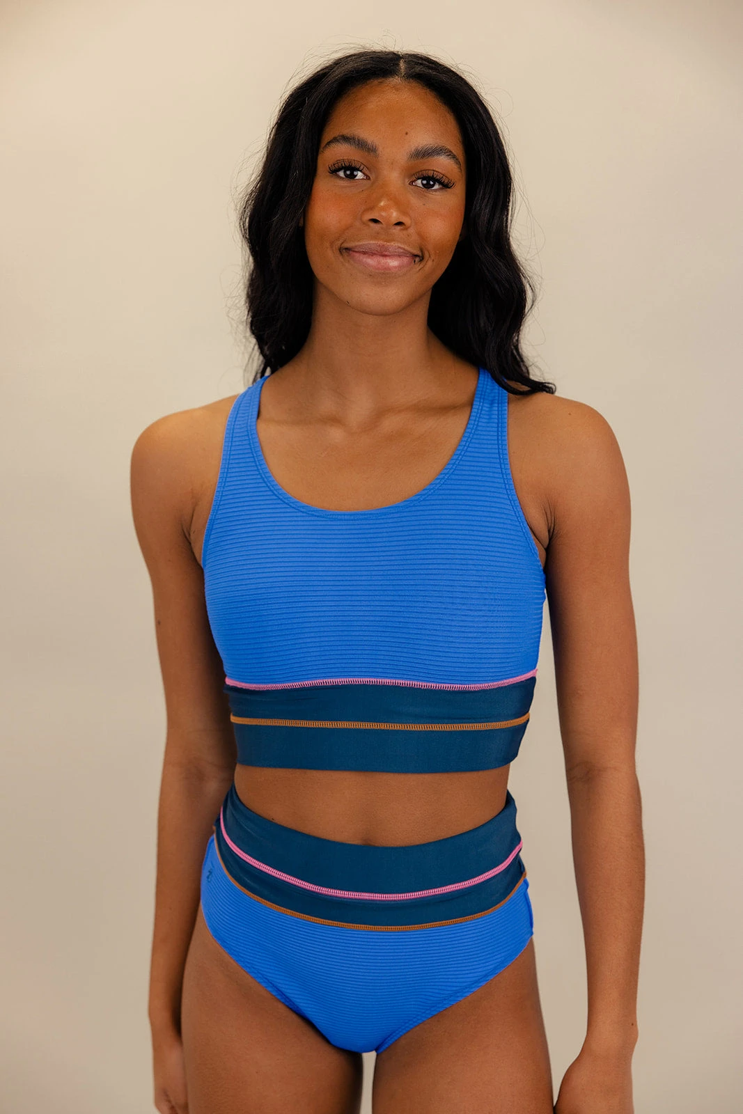 Dive into summer with confidence, style, and a whole lot of cute in this swim crop. Featuring a scoop neckline, ribbed fabric, and a back zipper, this top really is the whole package. Pair with the matching bottoms!