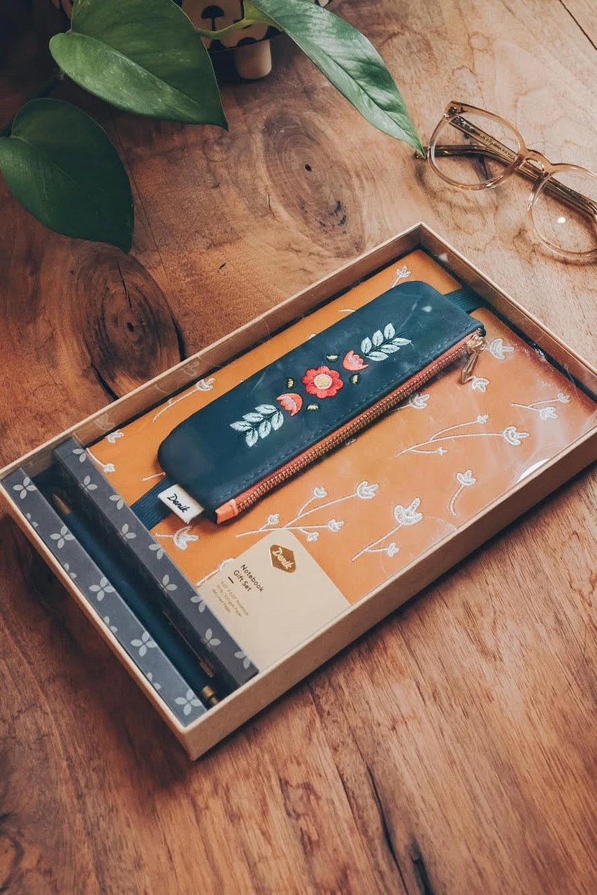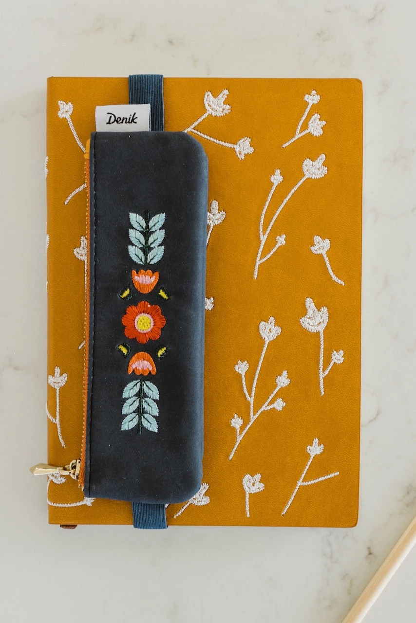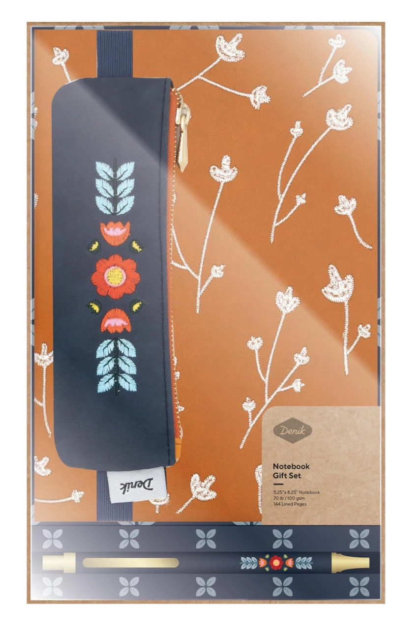 Features our Any Given Minute Softcover Journal + Vernon Floral Embroidered Notebook Pouch + a matching pen!
