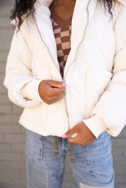 Your new go-to jacket. This timeless puffer features a hooded silhouette and diamond quilting throughout for a special touch. She’s also oversized + slouchy which leaves room to layer underneath. This forever classic puffer jacket is sure to be your new staple style all season long! Seriously, you can wear this puffer with anything + everything.