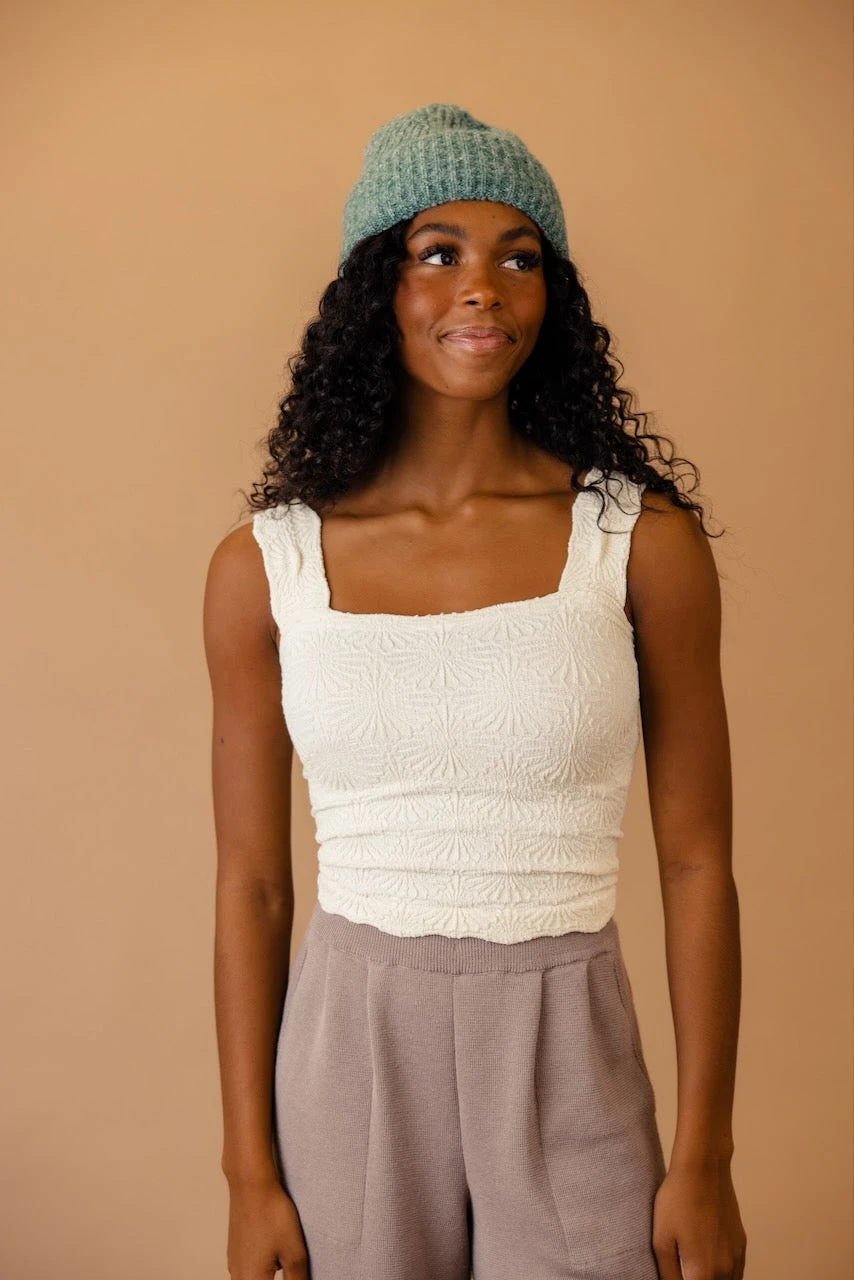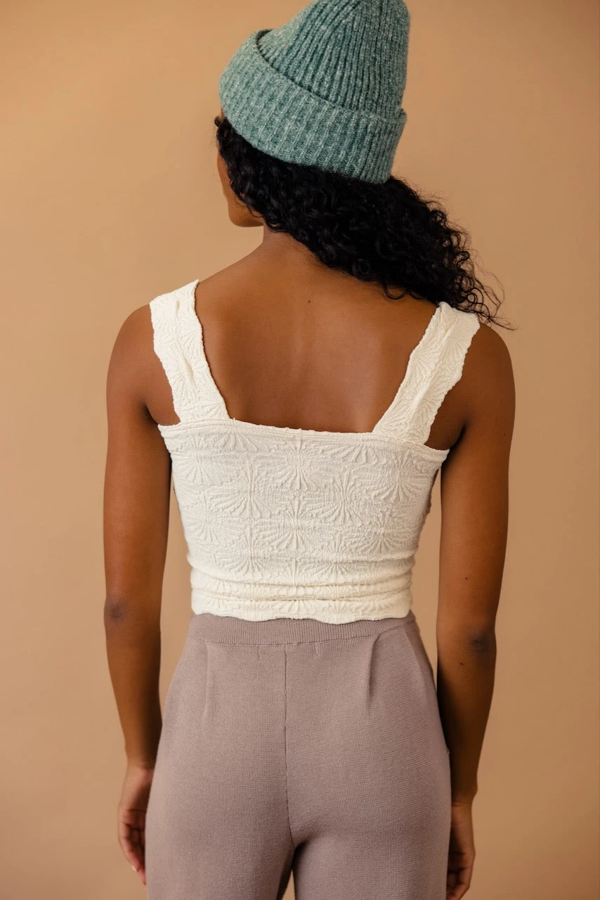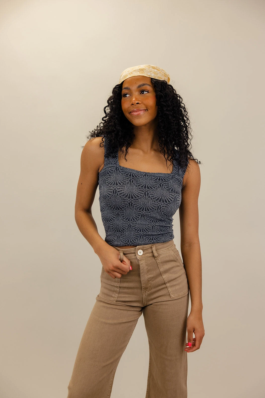 This cami is a love letter to you. It’s square neckline and thick straps make it so flattering on any shape. Its floral texture and scalloped edges make it dainty and cute layered under anything this fall.