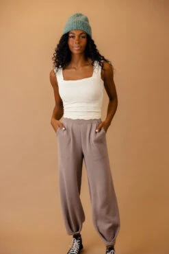 white // paired with free people marled ribbed beanie in darkseagreen, free people freya sweater set bottoms in thistle, + a jacket coming soon