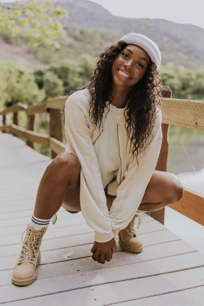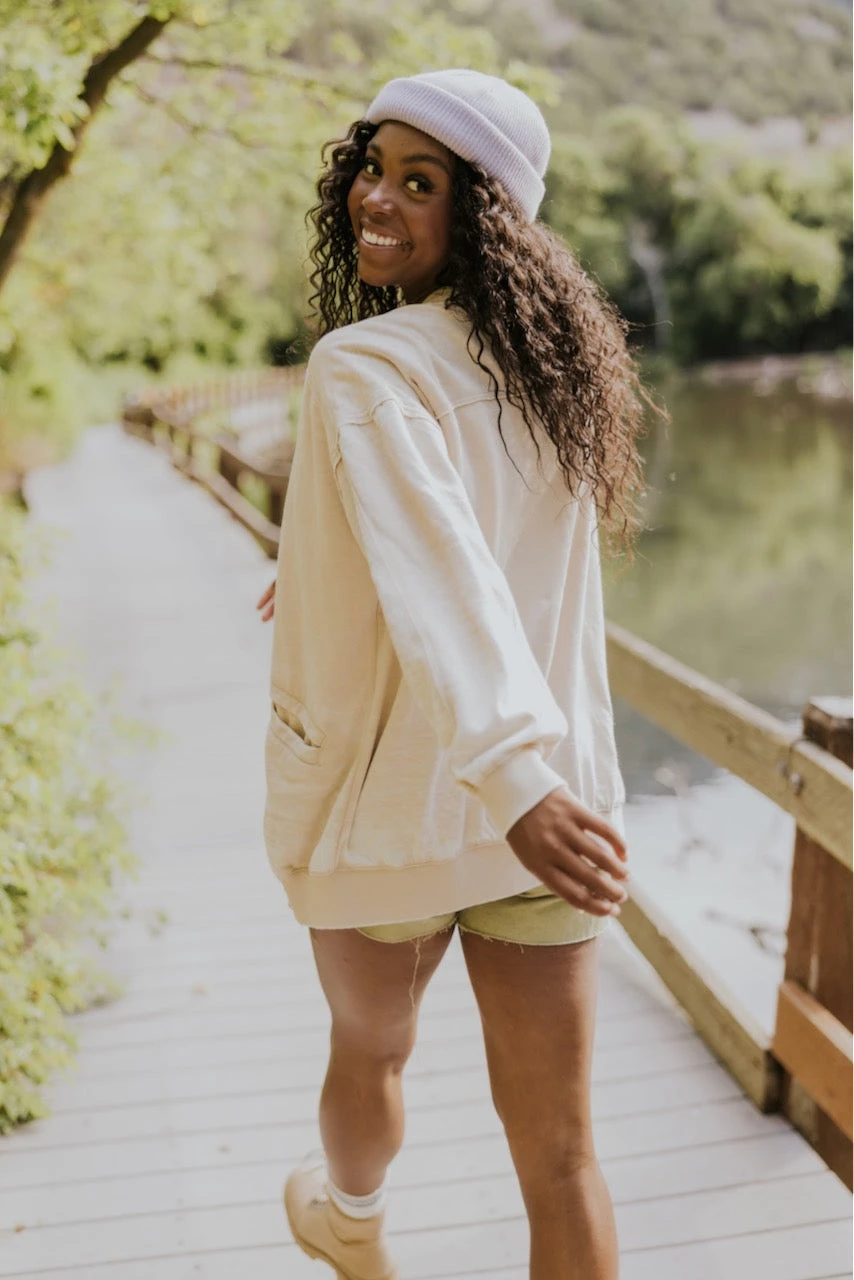 If you’re looking for the perfect jacket for those fall days ahead, this bomber jacket is it. Add this vintage-inspired jacket to your collection because she’s chic + effortless. The Bobby Jacket was designed with a slouchy, relaxed fit and worn detailing around the seams giving it a truly lived-in look.