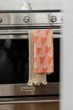 Brighten up your kitchen or bathroom this spring with the Bountiful Tea Towel made by Geometry! With its adorable carrot design, this tea towel adds a delightful pop of color and charm to any space.