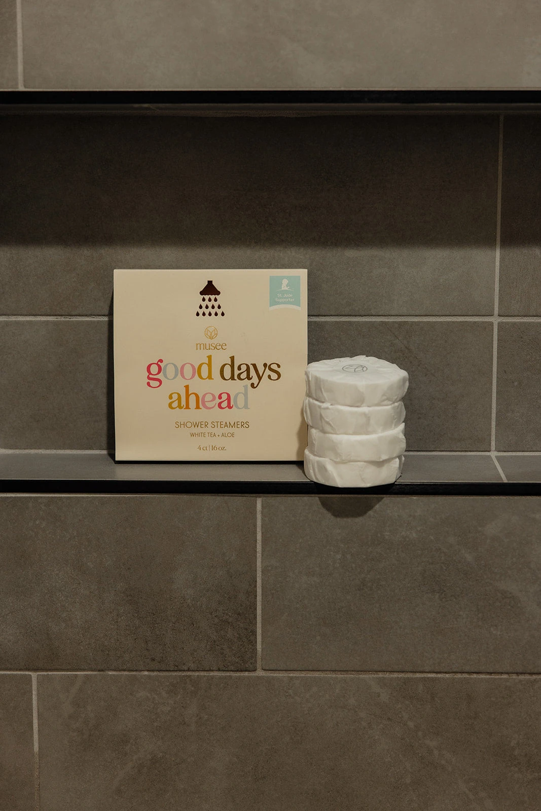 Need to relax + unwind? These shower steamers have you covered! Indulge in the refreshing fusion of white tea and aloe as the steam unveils a spa-like oasis in your own bathroom.
