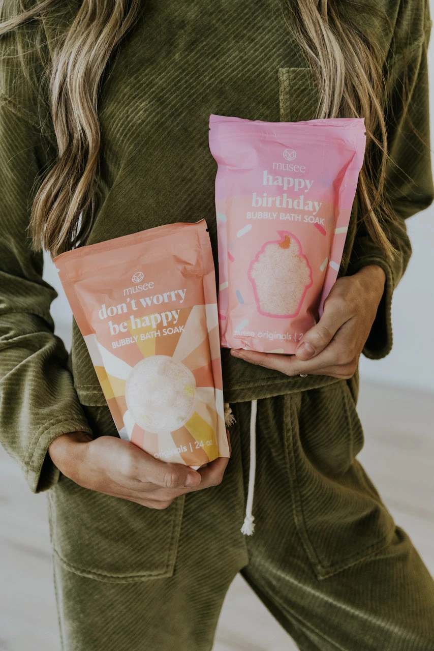Make every day feel like it’s your birthday with this Cotton Candy Scented Bubbly Bath Soak! This soak makes a colorful bubble bath and comes with a surprise toy cupcake inside! Makes 3-4 baths.