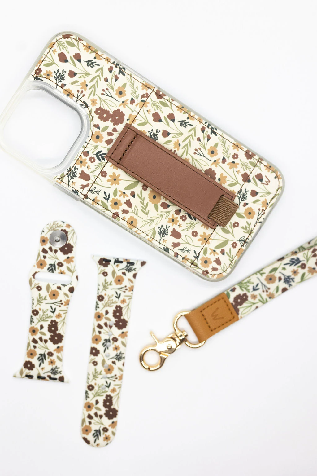Case Design: Beige background with maroon and brown florals
