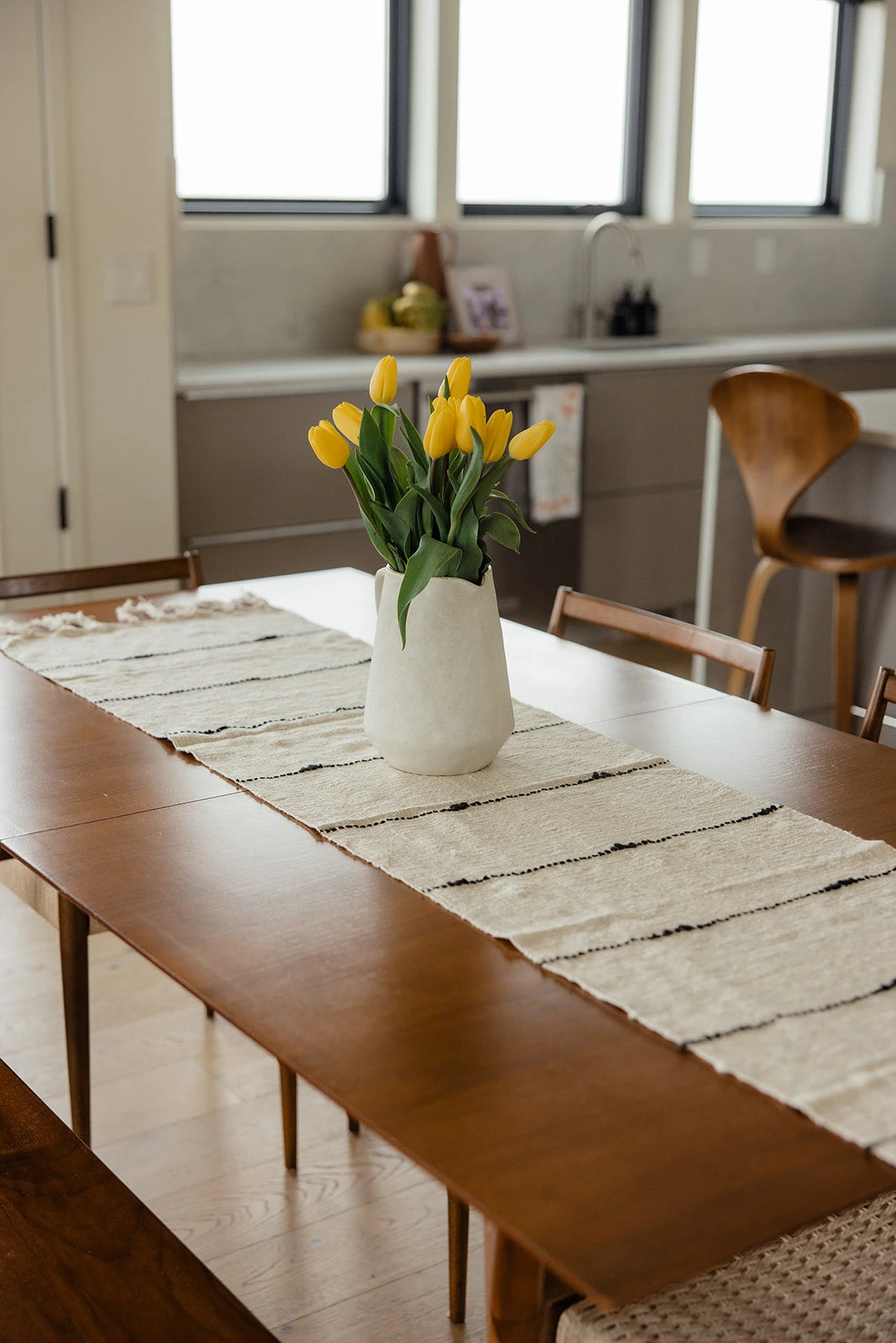 Featuring delightful embroidered stripes and whimsical fringes, this table runner brings a dash of cuteness to any table setting. Set the stage for memorable moments with this charming accent piece!