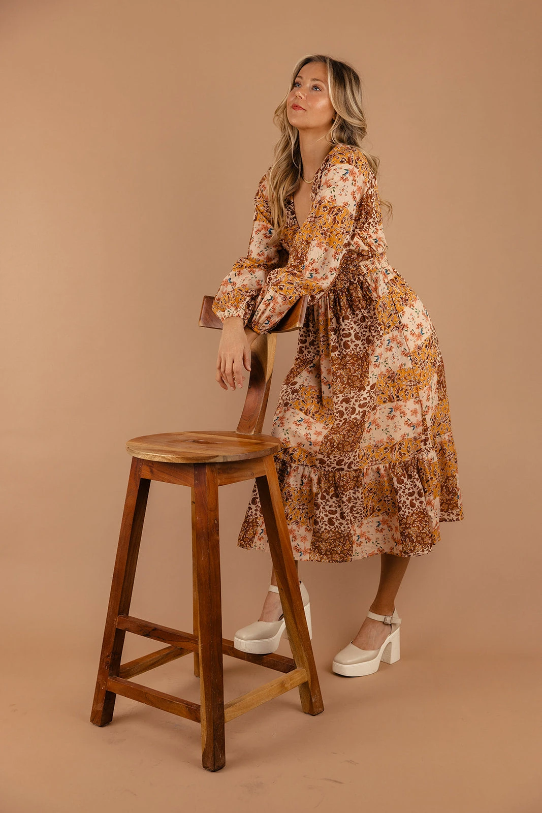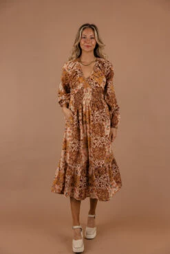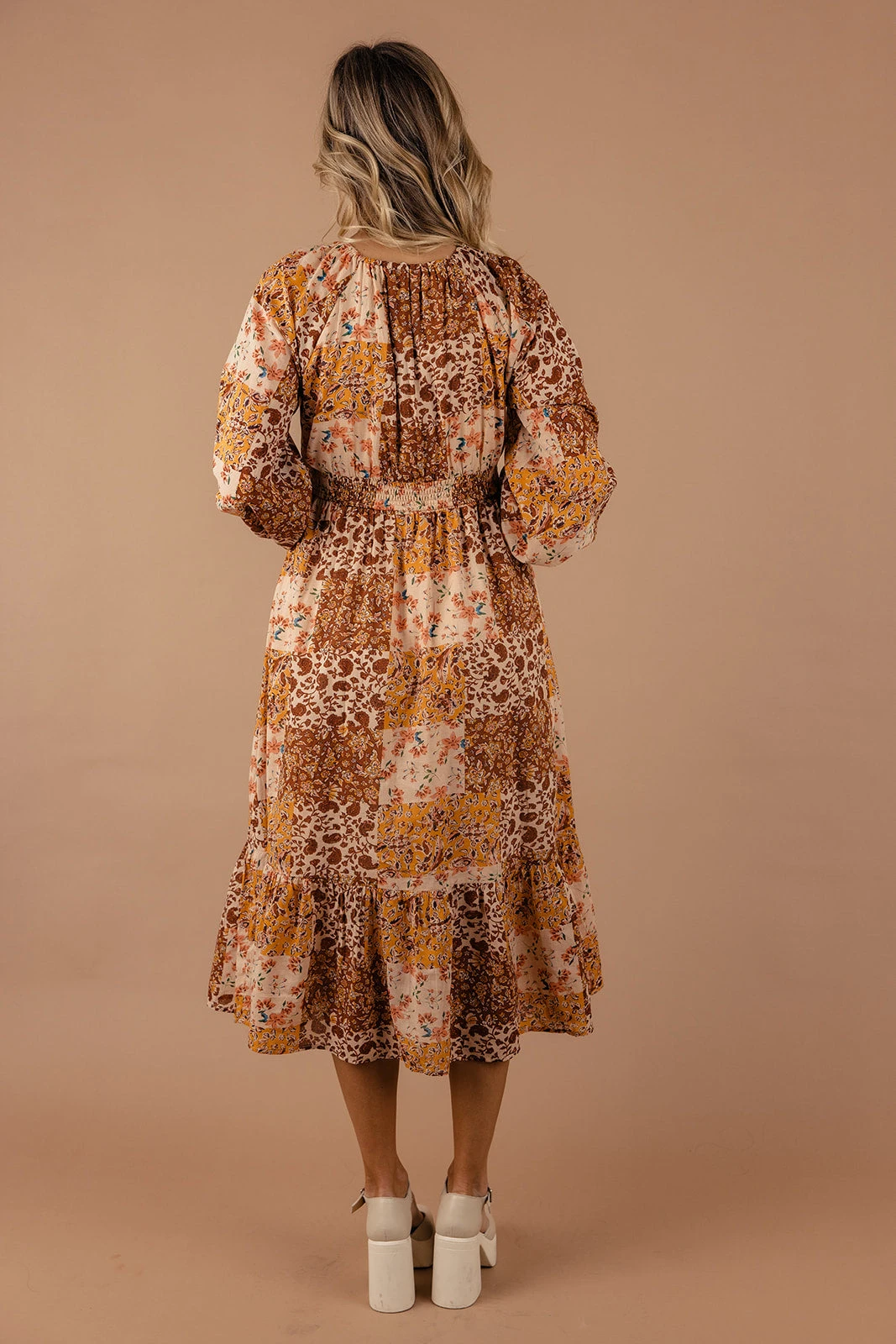 Embrace your inner boho goddess with this midi! Featuring a darling smocked bodice, poet sleeves, and playful patchwork detailing, this dress is a true standout piece. Perfect for any occasion, this dress is sure to turn heads wherever you go.