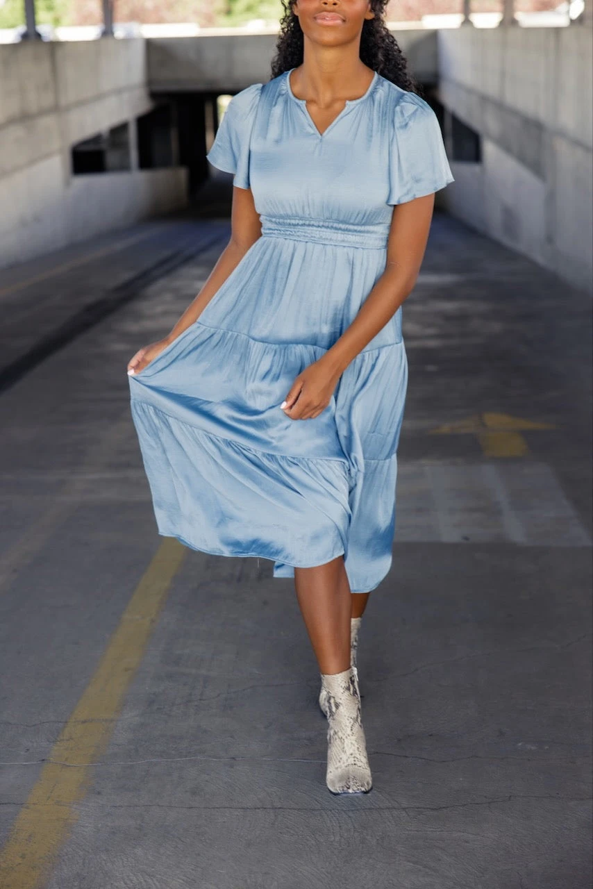 The Jasmine Flutter Sleeve Maxi is a fall/winter staple. Can you imagine wearing it to weddings, special events, or on a date with your special someone? It’s so cute paired with booties + you can even throw a cardi over the top when the weather changes.