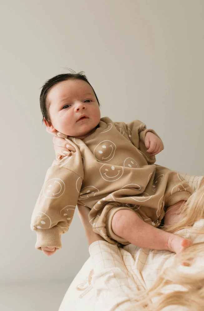 Just smile long sleeve romper! The short sleeves make this the perfect transitioning piece in your littles wardrobe. It features a snap closure making diaper changes so much easier!