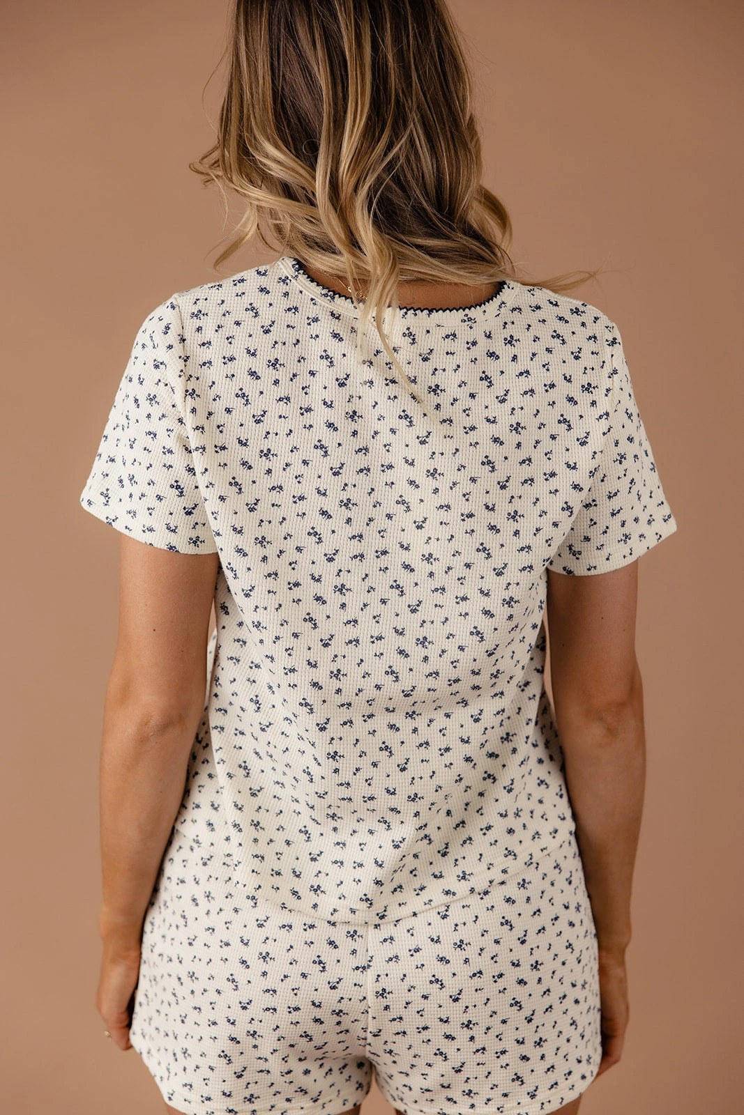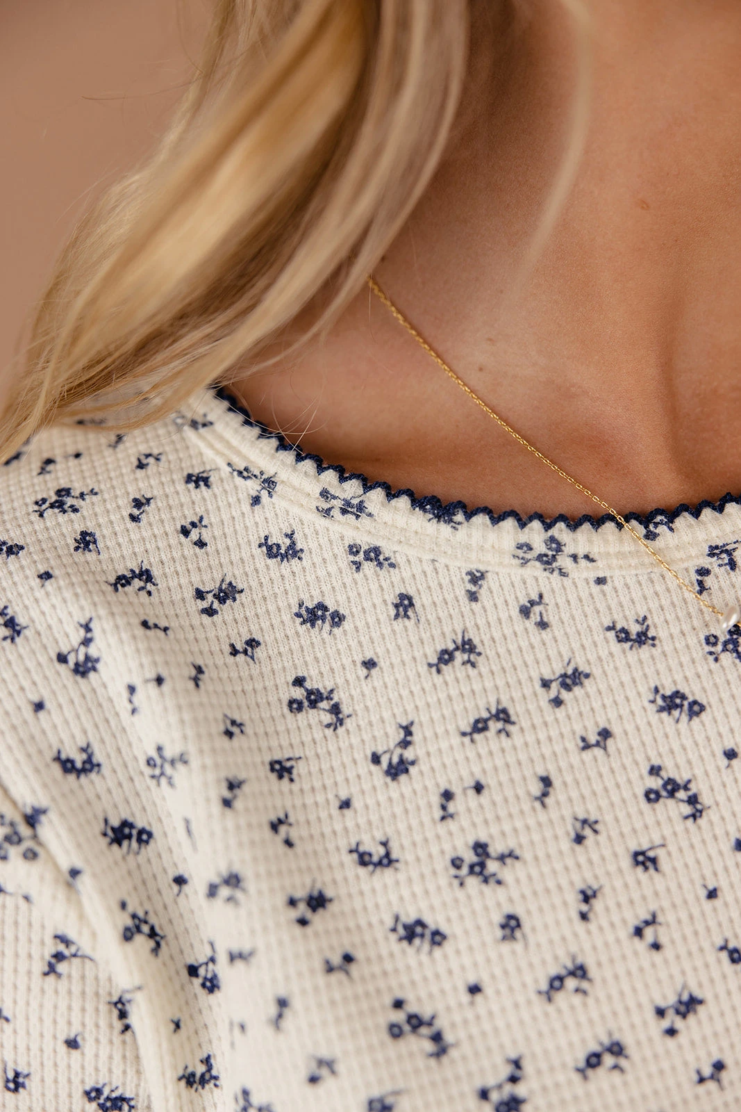 This cutie waffle knit set features a navy floral pattern and navy stitching. We love it paired as a set with a cardigan or jacket and a cute pair of flats. You can also switch it up and wear each piece on its own and have many more looks to come!