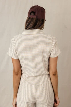 Wear this top with the matching pants for the perfect set! This top features functional buttons, a classic collar, and a slightly cropped fit. The Kyla is a simple yet trendy top that is ready for all seasons!