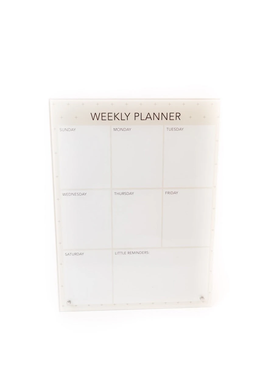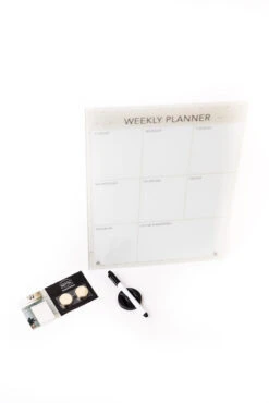 Display your documents and pictures with this modern + clean weekly planner. This dry erase board is beautifully crafted with made-for-heavy-use tempered glass + high-quality printed artwork. You can write little reminders and notes to family on the glass surface.