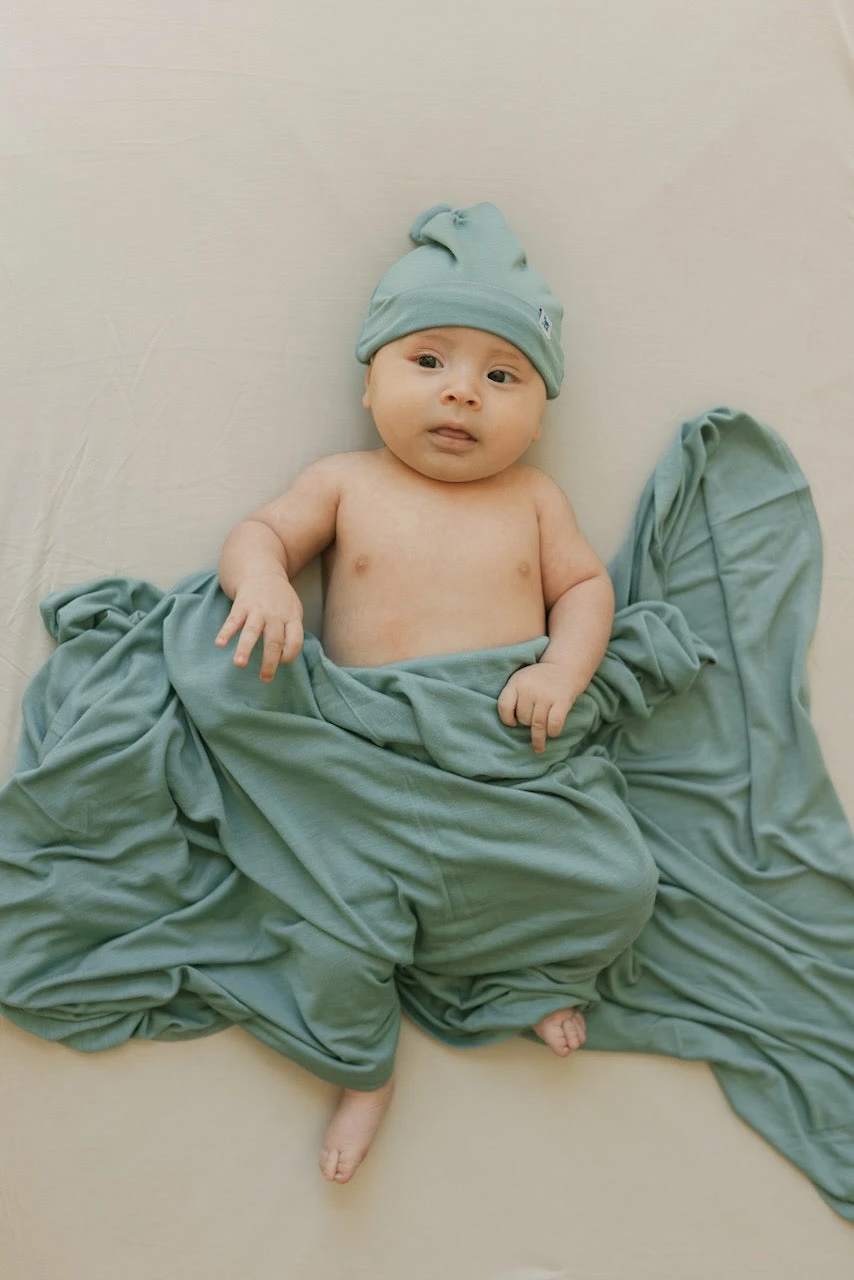 Made from buttery soft, stretch knit material, this duo is perfect for a snug swaddle, burping, and cozy nursing moments. Welcome your newborn with this set, or use it as the perfect gift for someone else!