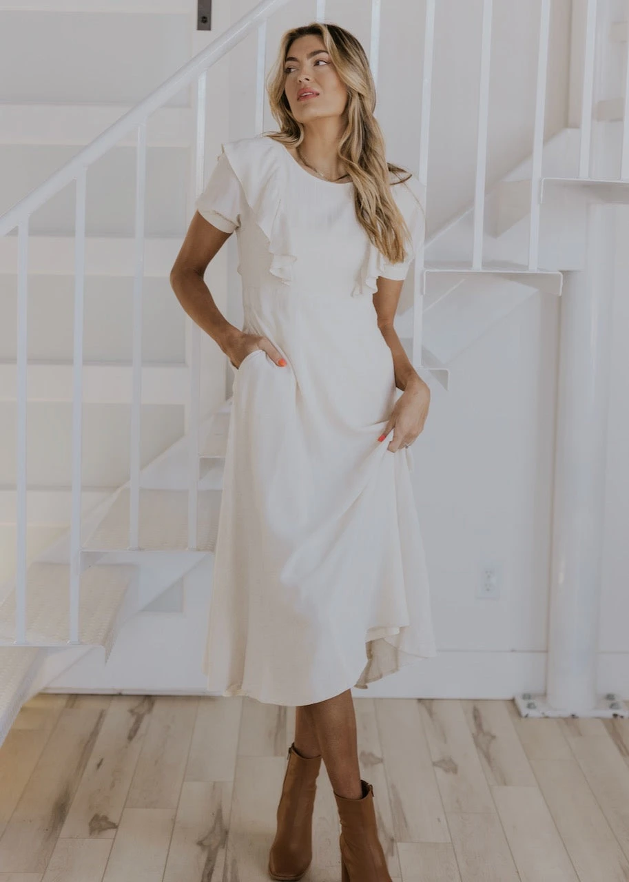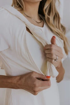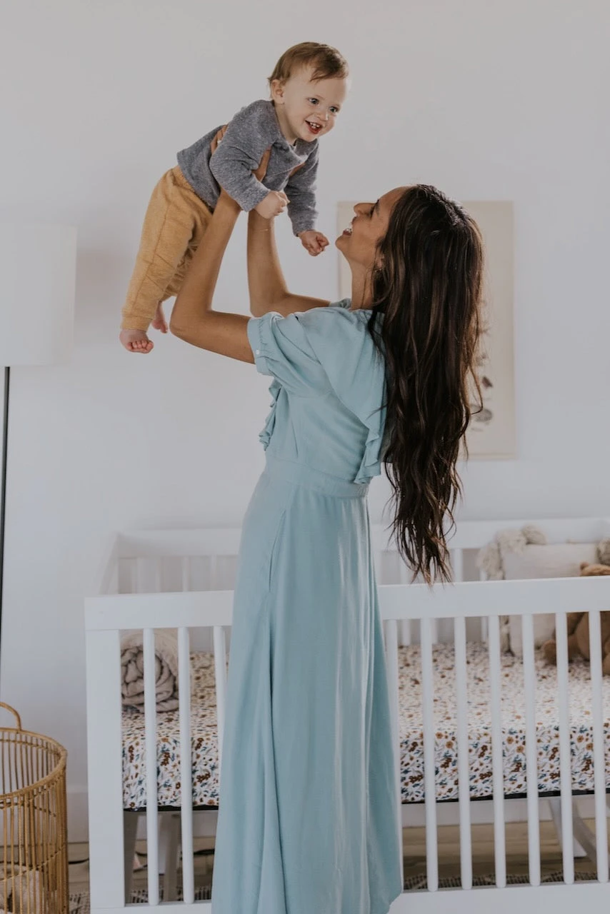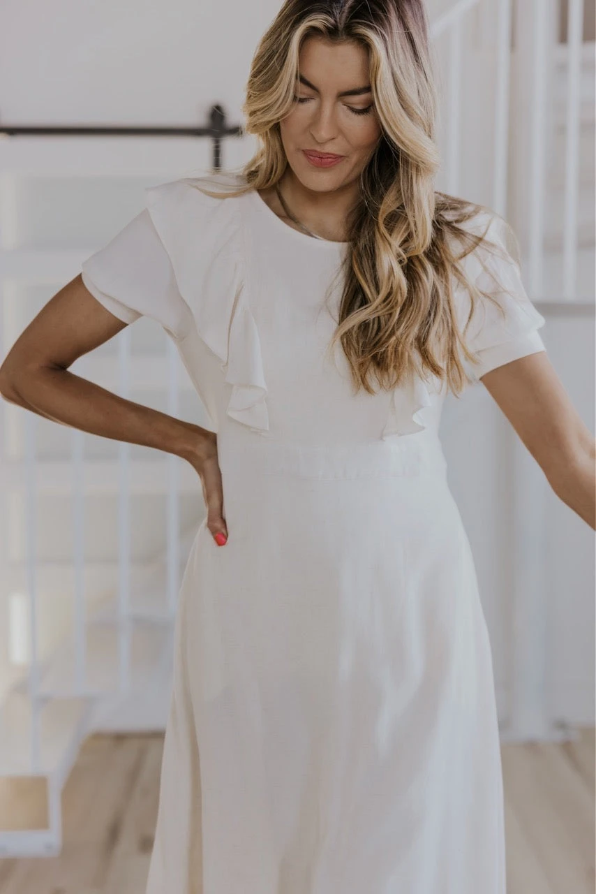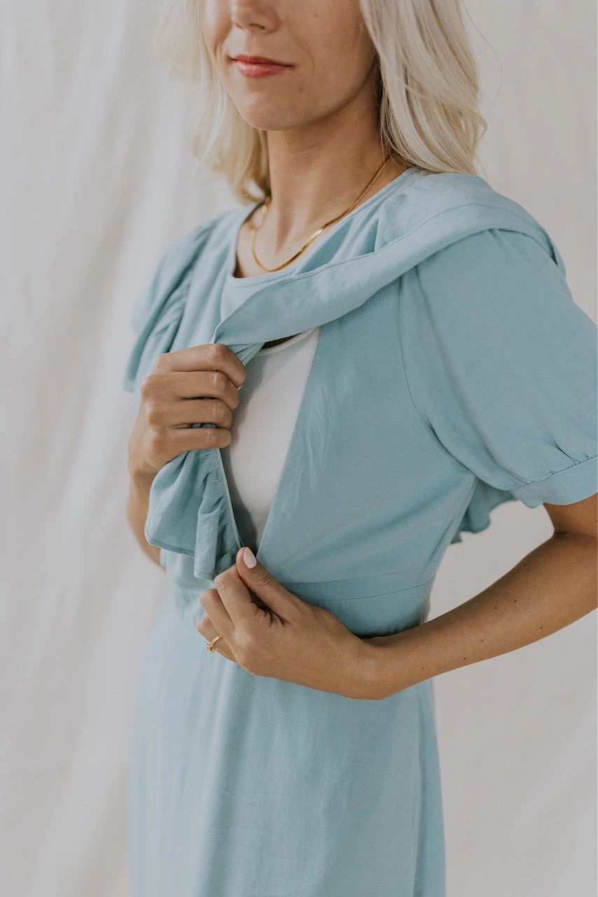 Moms have the toughest job and ROOLEE is here to make it a little bit easier for you. Our MOM dresses are designed for mothers, by mothers. This dress features a back zipper to make getting ready in the morning quick + easy and two hidden front zippers for nursing. A fun + flirty ruffle accent and a flowy skirt to add movement, and our favorite detail: pockets (because you deserve the best).
