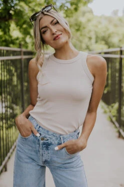 Simple staple pieces make the world go around. Those pieces we can wear with anything, anytime. I personally would wear tank tops like these nonstop with denim, skirts, shorts, + over dresses. An absolute game-changer. Ribbed. So soft. High neck. Racerback design. Get it in every color + I promise you won’t regret it!