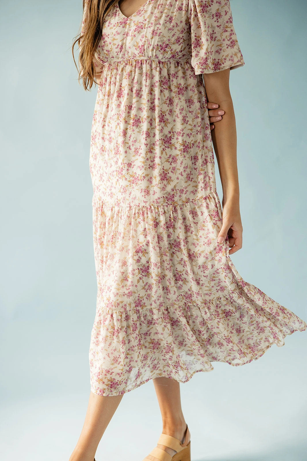 Introducing the Marmee, a delightful blend of timeless charm and modern grace. Adorned with an empire waist, flutter sleeves, and a twirl-worthy tiered silhouette, she is a whimsical journey into elegance. Pair with some heels and embrace the simple joys of life.