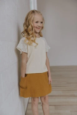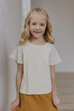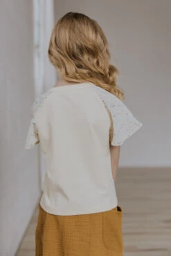 This blouse is so charming for your little one.Β It features delightful floral sleeves that add a playful touch to its classic look. Crafted with attention to detail, it offers both style and comfort. Dress up your little one with this adorable blouse, perfect for any occasion.