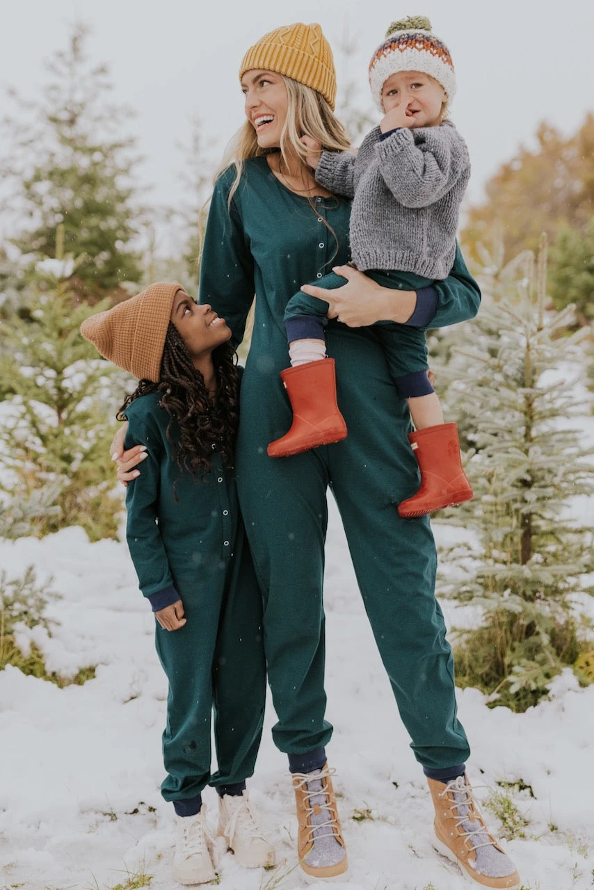 Now that we have a Christmas joke out of the way, let me tell you about this onesie! The Mini Snuggle Is Real Pajama Onesie was designed with functioning buttons down the front, a horizontal stripe pattern, and a single back pocket. Perfect for your little ones and guess what? The whole family can match!