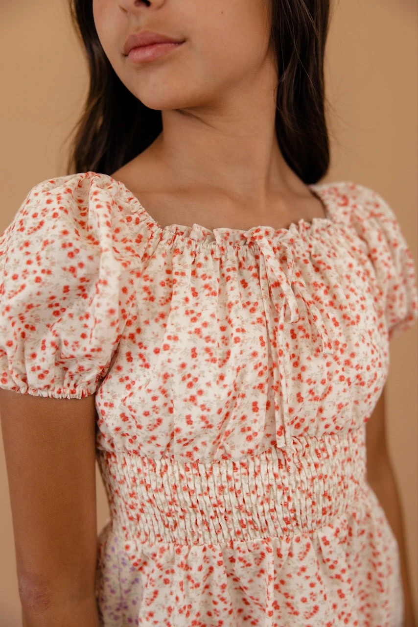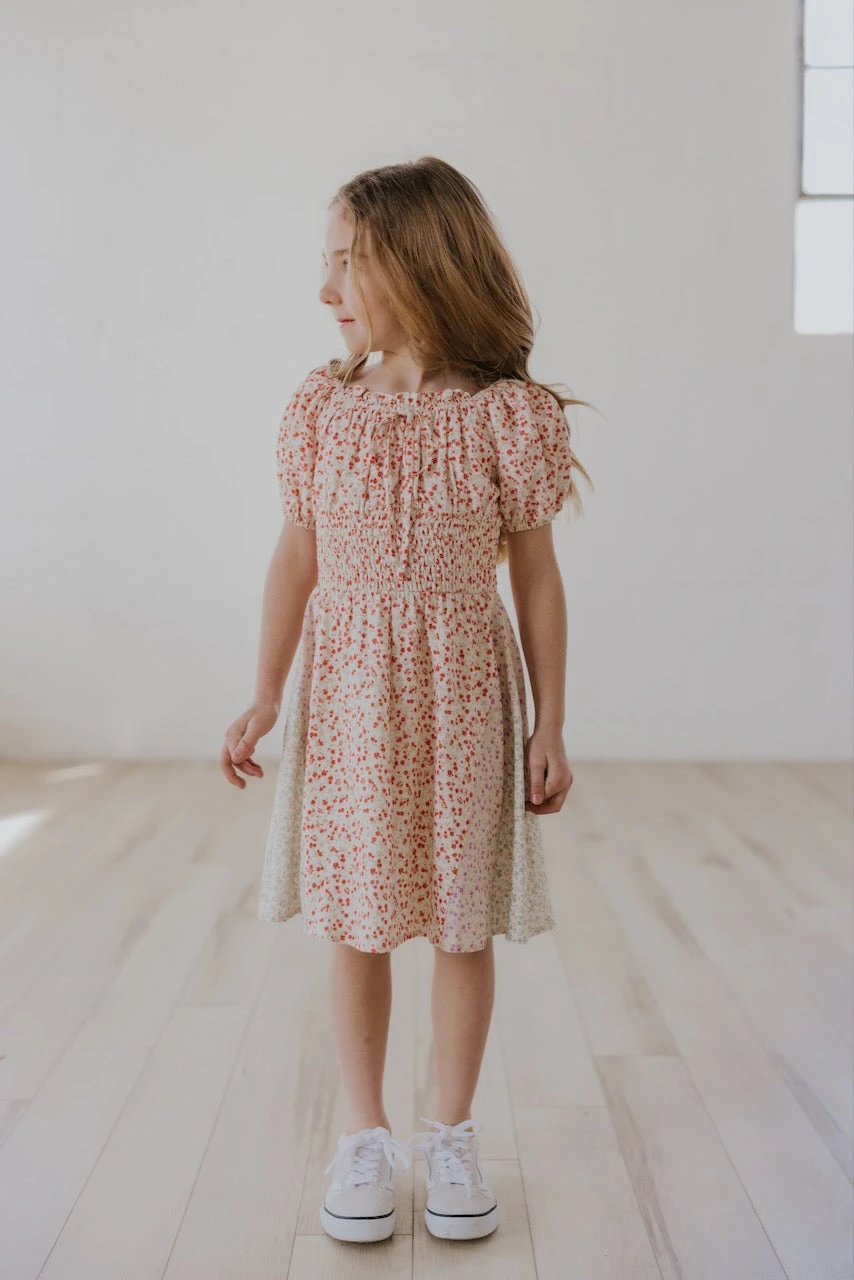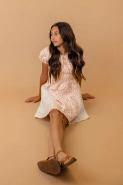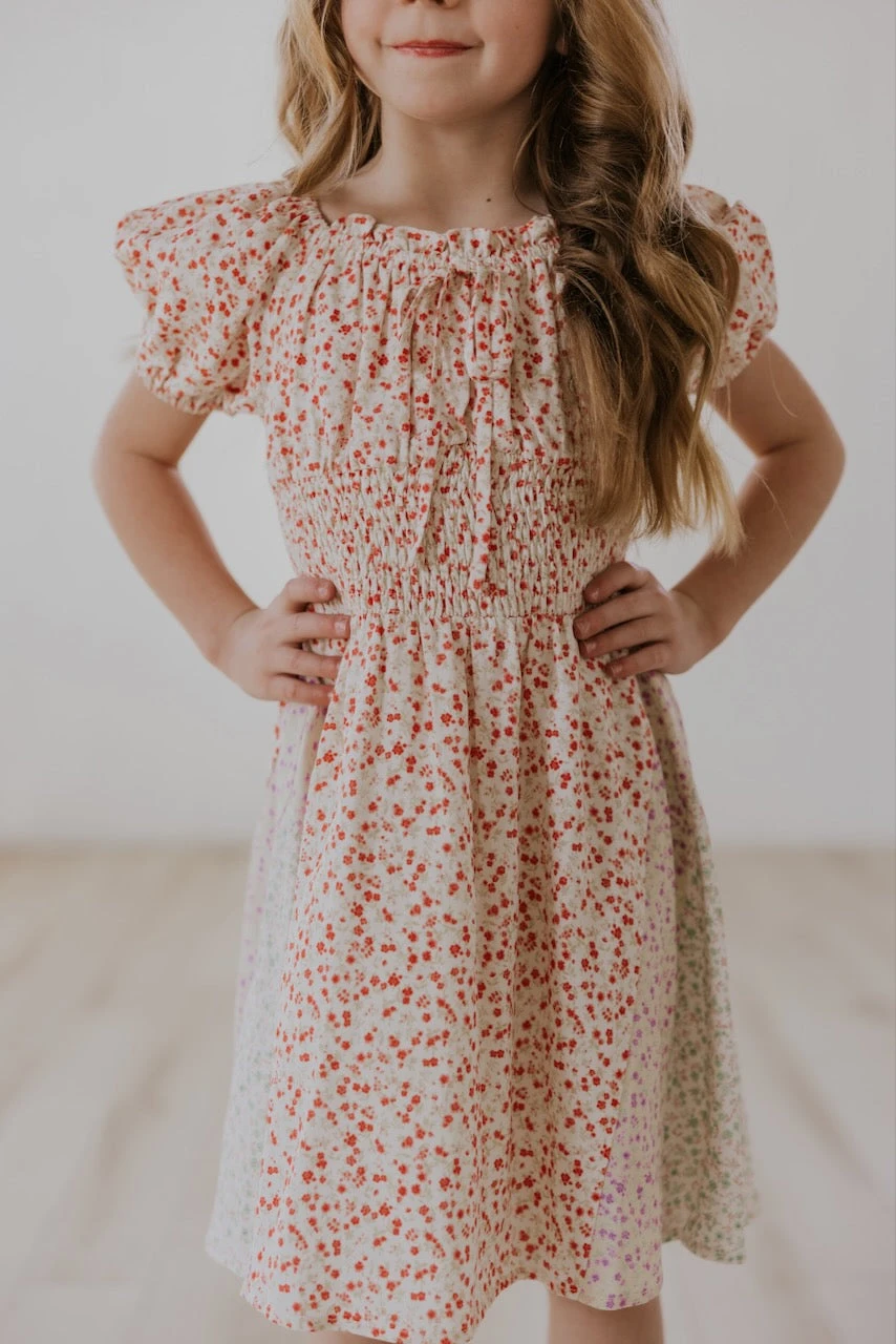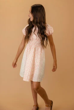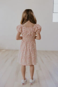 Introducing the delightful Mini Sunday Morning Detail Dress, a charming mommy and me style for you and your little one. This kids’ dress showcases dainty florals, puff sleeves, and a playful tie-neckline, adding a touch of sweetness to the design. The patchwork details on the skirt create a whimsical and eye-catching look.
