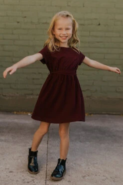Your favorite ROOLEE dress comes in a mini! Perfect for flower girls, any special occasion, or church, this dress is designed with cuffed sleeves, a buttoned keyhole in the back, elastic around the waist, and a removable tie waistband.