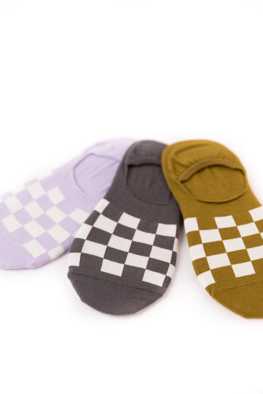 If youโre not an ankle sock wearer, donโt fret because we have some socks for you! This no-show sock pack comes with three different colored socks with a checkerboard design. These socks are also ideal for indoor or outdoor adventures + will fit effortlessly in everyday life!