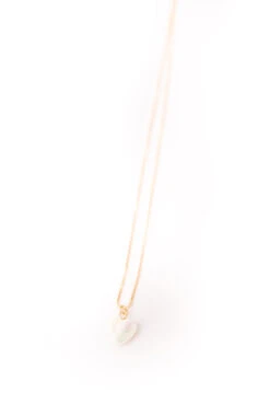 This whimsical pendant necklace has a heart-shaped stone with a dainty gold chain. With the gorgeous shimmery white tones, this necklace adds the perfect touch to every look. This simple necklace reflects the colors of the rainbow beautifully as you move because of the iridescent white tones. This necklace to gift to a family member, a friend, or a significant other—or you can get it for yourself, I would!