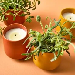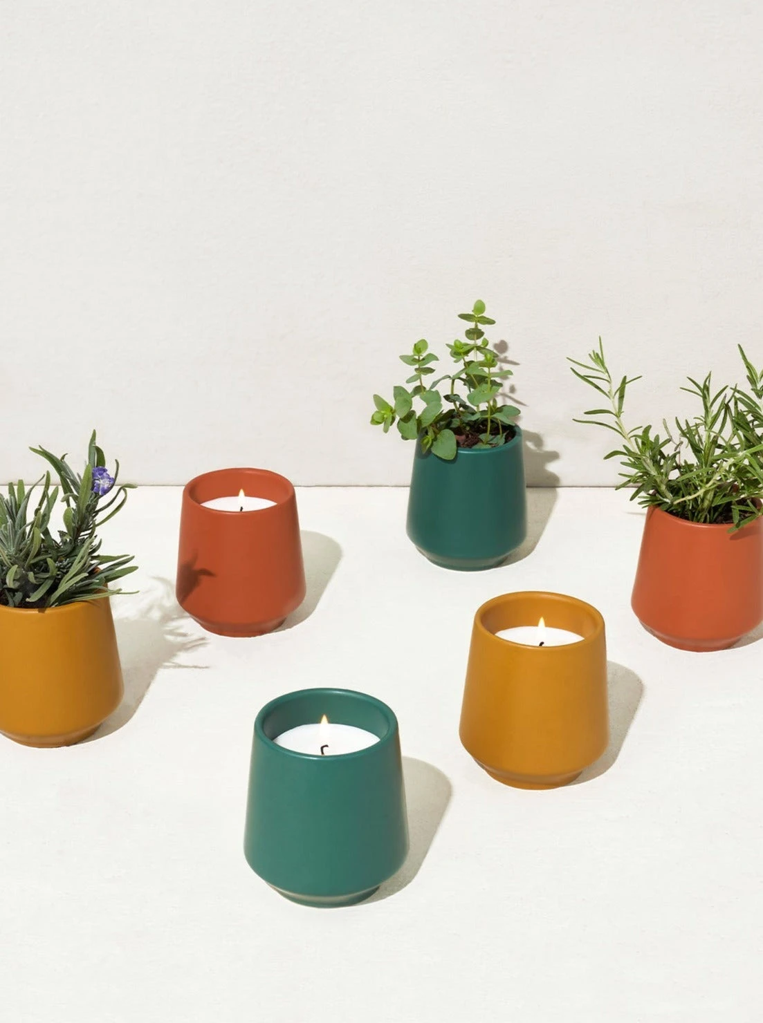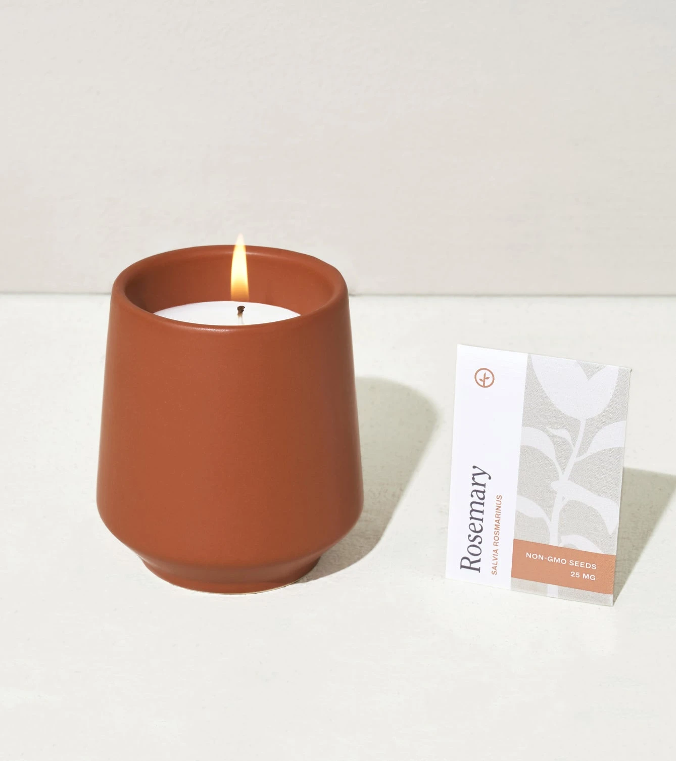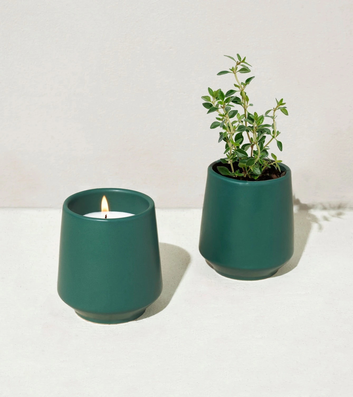 Burn, plant, and grow! This ceramic candle vessel transforms into a planter after the flame has burned down and includes seeds to grow a complimentary herb or flower. The 6oz scented soy-blend candle features a light and refreshing scent.