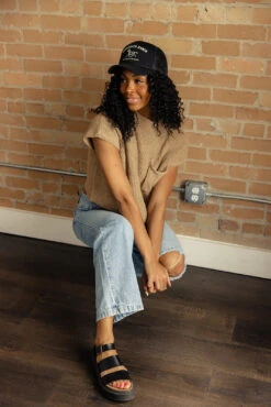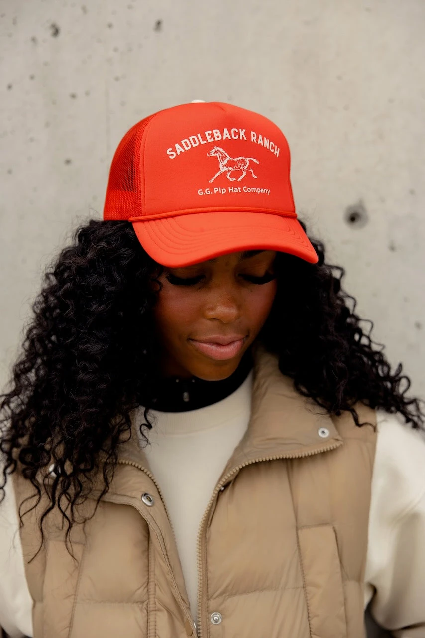 This vintage inspried trucker is calling your name. Featuring a bright firey red + white graphic, you can add this to any style for a pop of color.