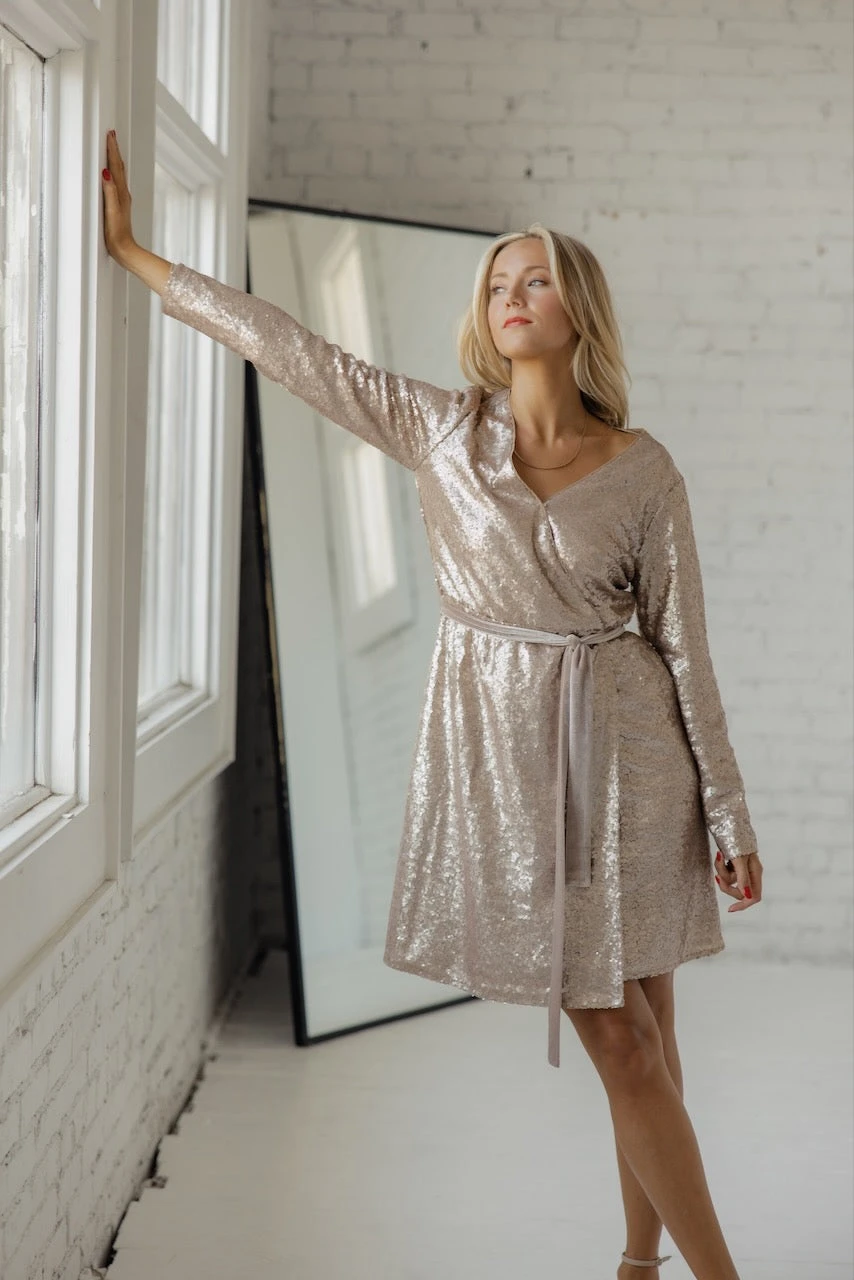 The holiday season is the perfect excuse to break out the sequins and the Eleanor is ready to rise to the occasion. This luxe faux wrap dress gets a high-shine makeover thanks to the paillette adornments in rich metallic hues. The Eleanor is an ideal party dress but we suggest wearing it any time you want a little glamour in your life.