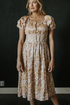 This is one of those things that you have to see to believe. This dress is unique in such a way that will be hard to put into words. It shines. The movement of this fabric creates a unique sheen that disappears and reappears as you move. It’s a moving and living work of art. Featuring a unique smocked waist, puff sleeves, and dainty breathtaking embroidered detailing throughout. She’s the dress you’ll never forget, and you’ll always want to wear.