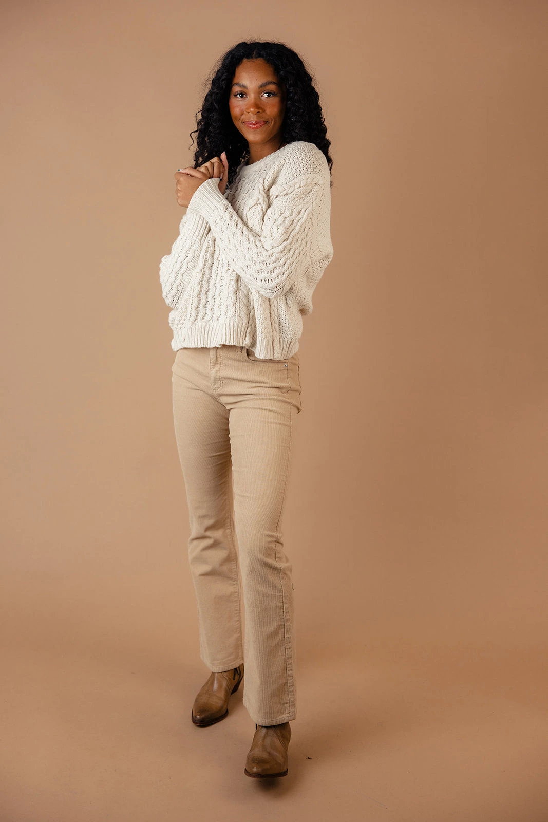 These cord pants feature a slim bootcut fit and the perfect neutral tan. Pair with sweaters, tees, and anything in between this season!