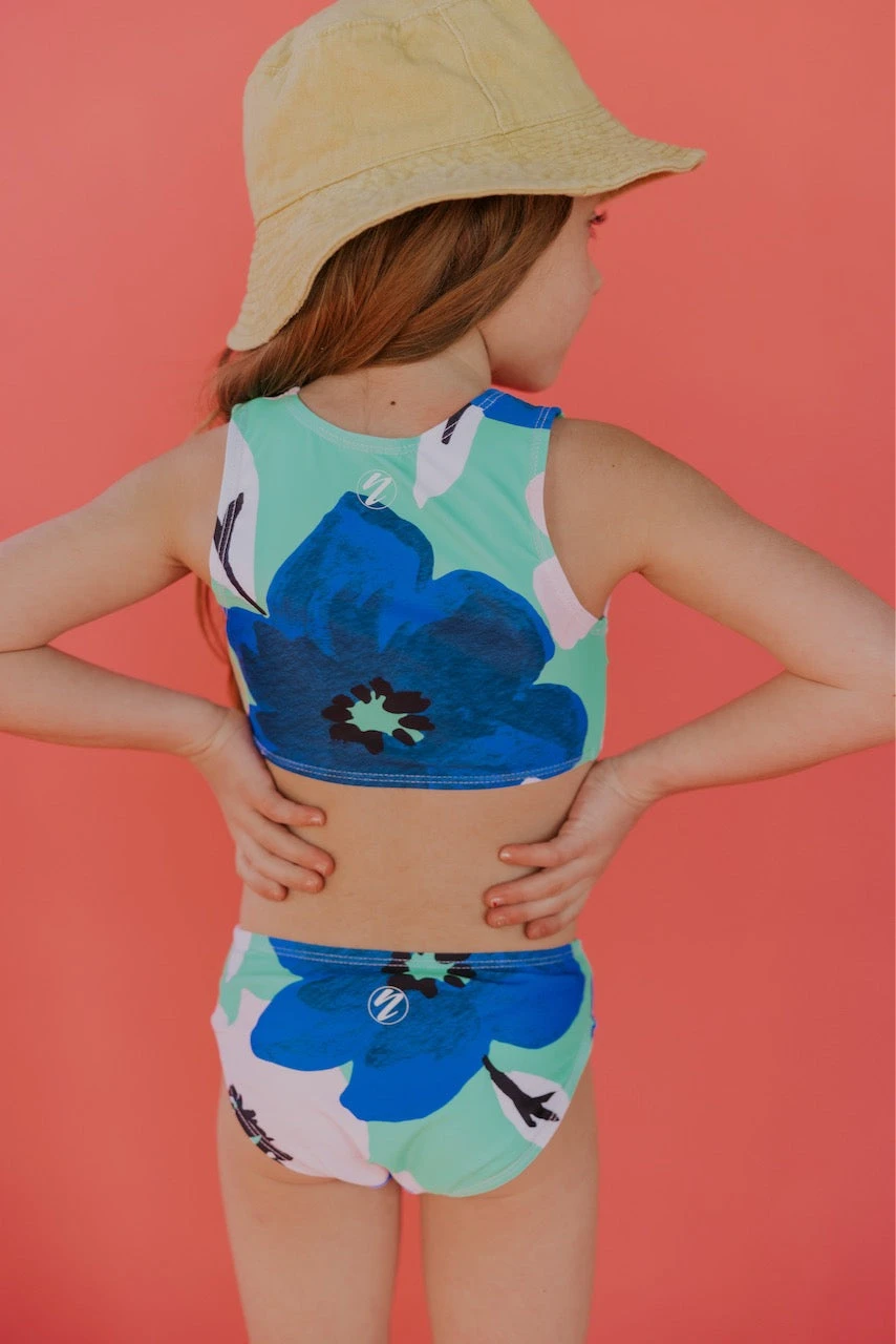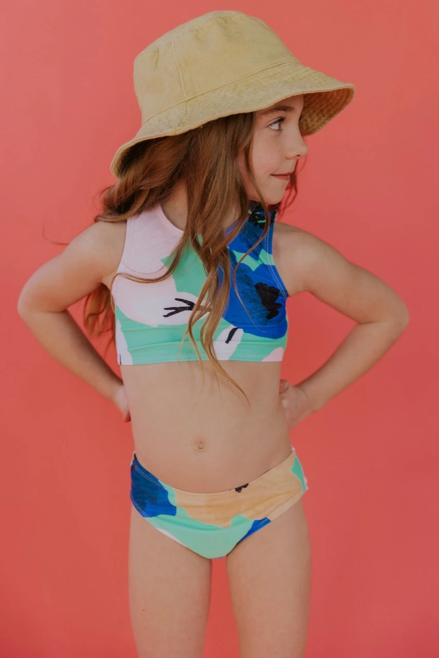 A two-piece set that’s blooming with style from its color palette to full coverage design. This set was designed with thick straps so it stays on through every splish + splash and a colorful print that won’t fade in the sun, pool, or the wash. Mix and match with suits your little one already has or wear them together – the choice is yours (or your minis).