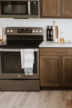 Looking for cute dish towels? This dish towel has tassels at the ends, how cute is that? These towels come in a white cream color with gray accent stripes. Get it for your kitchen like right now, I’ll wait!