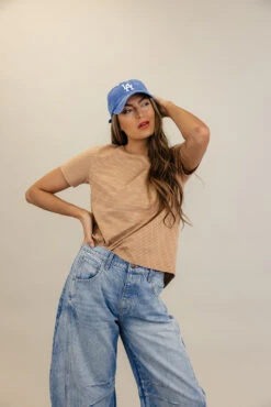 // paired with the LA baseball cap in steelblue + free people good luck mid rise barrel jeans in steelblue