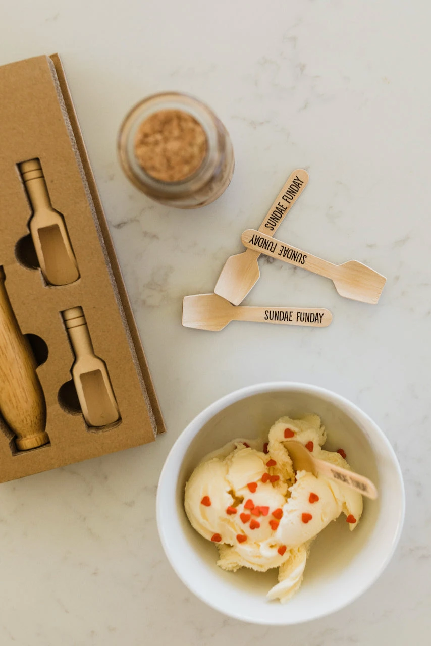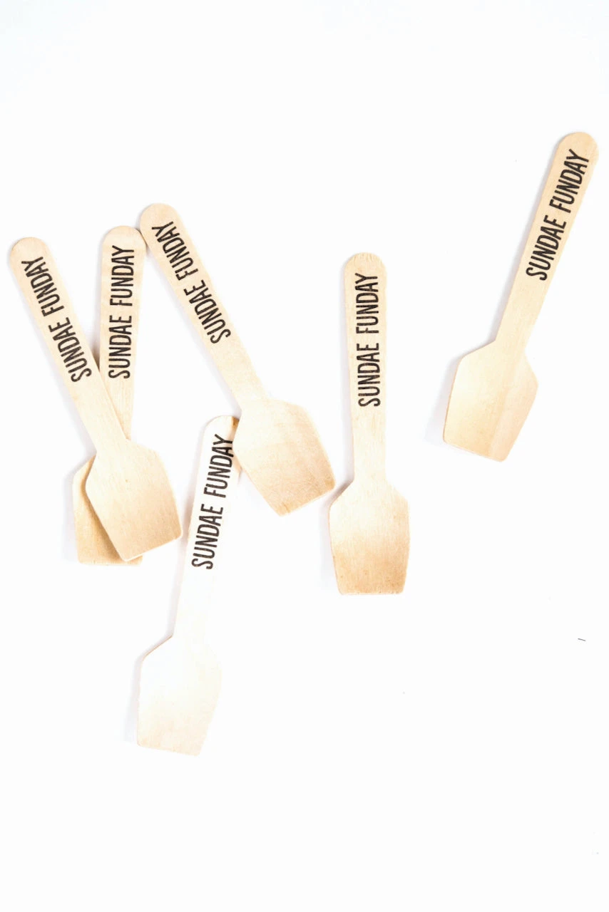 Add some flavor to your ice cream fix with sundae funday spoons! Thin wooden texture scoops with “sundae funday” phrase. Make ice cream more fun.